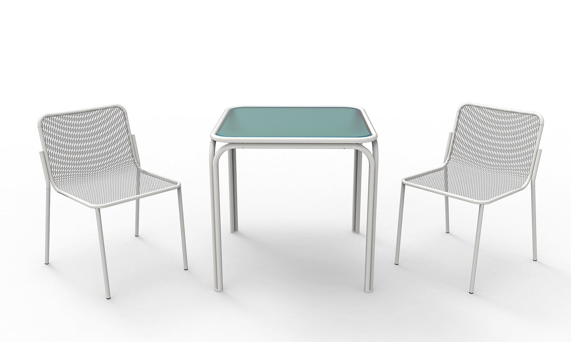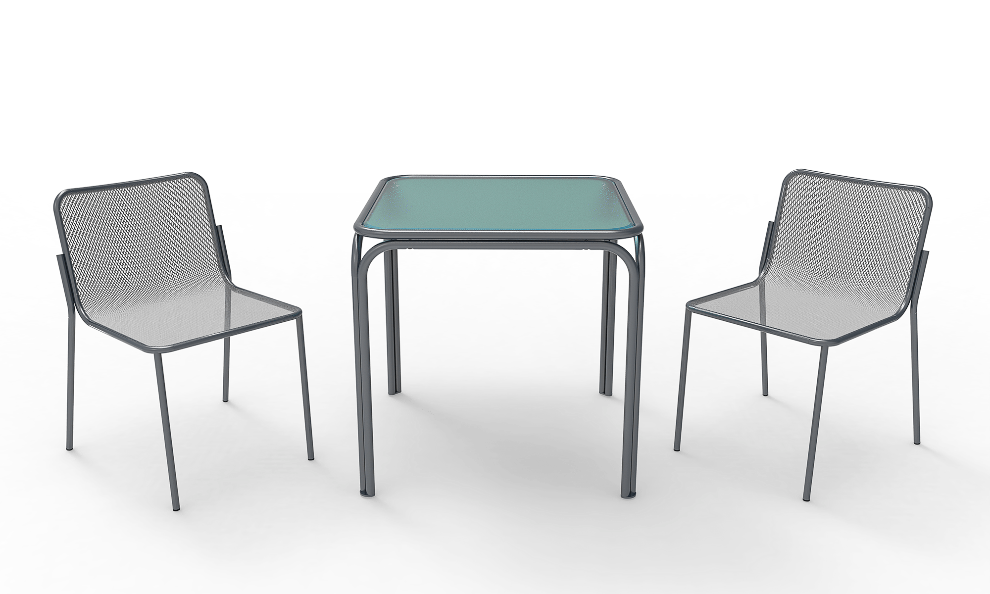 The balcony table and chairs set is both elegant and neat, and the chairs are also very comfortable to sit on. The seat and backrest patterns of the balcony chair are made from beautifully engraved CNC-processed solid steel.